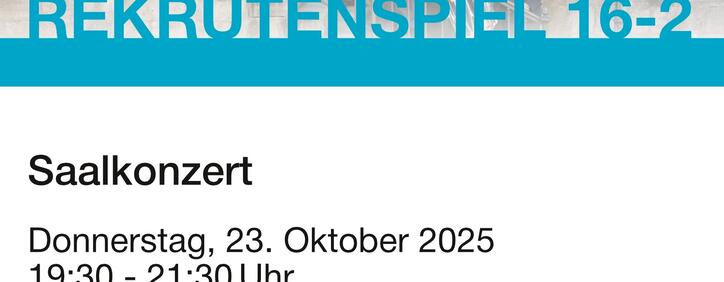 Saalkonzert des Rekrutenspiels 16/2. Festwirtschaft durch die Jugendmusik Sennwald. Parkplätze beim Marktplatz.